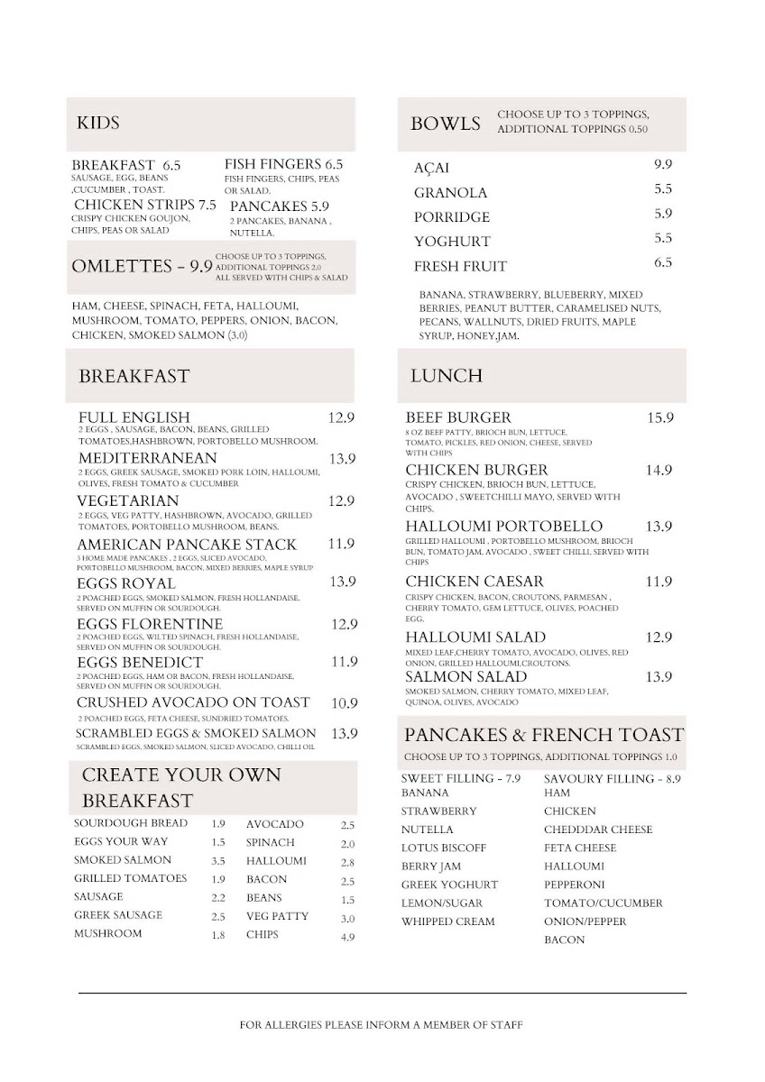 The Lanes Cafe (Westfield Centre) Menu